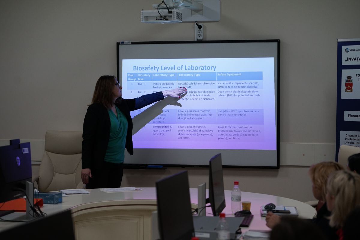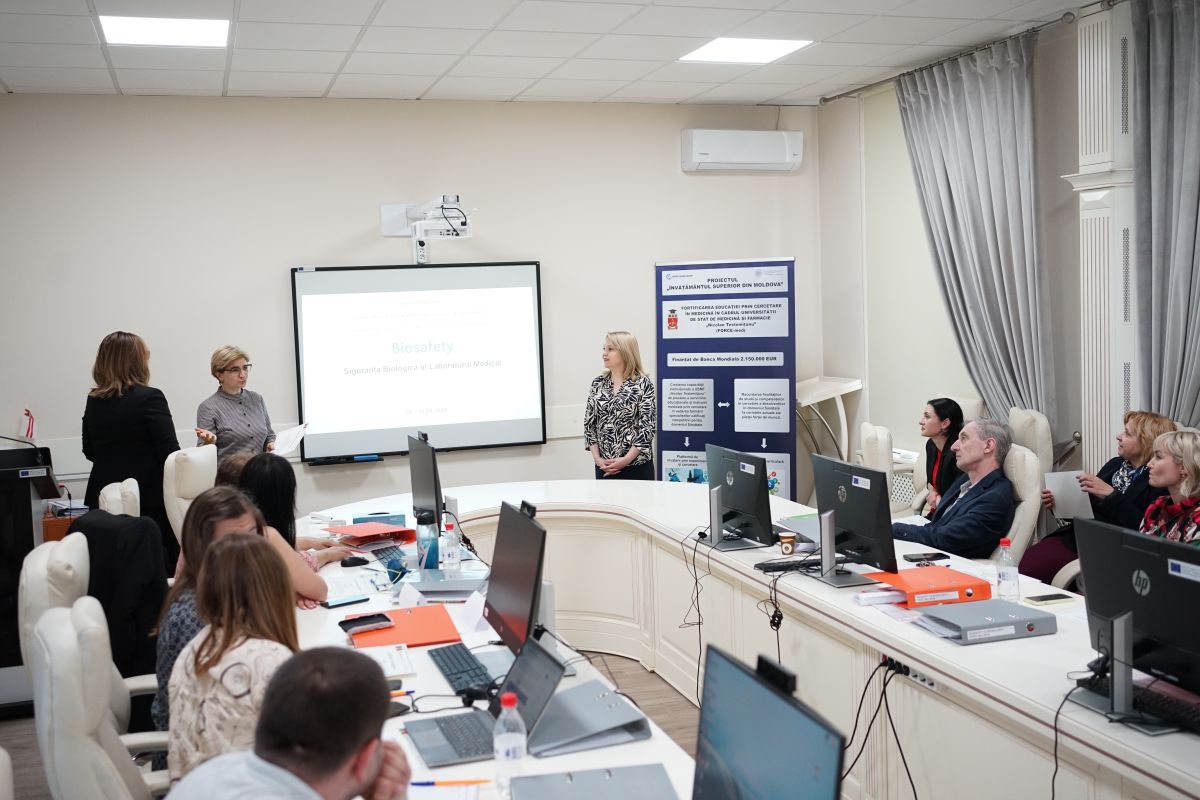 În acest context, în perioada 20-24 mai 2024, la Universitatea de Stat de Medicină și Farmacie „Nicolae Testemițanu” a avut loc o activitate de instruire pentru formatori – modulul Biosafety, organizată în cadrul subproiectului „Fortificarea educației prin cercetare în medicină (FORCE_Med)” – parte a Proiectului „Învățământul Superior din Moldova” din Programul de Îmbunătățire a Învățământului Superior al Ministerului Educației și Cercetării, finanțat de Banca Mondială, realizată de către expertul Elena Romancenco.