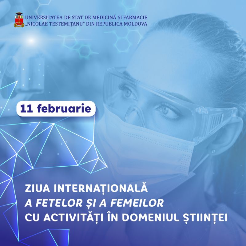 Astăzi, 11 februarie, marcăm Ziua internațională a femeilor și a fetelor cu activități în domeniul științei. Cu acest prilej minunat ne exprimăm admirația și respectul pentru eforturile susținute în dezvoltarea acestei ramuri în Republica Moldova. Universitatea promovează accesul egal al tuturor fetelor și femeilor în domeniile științelor medicale și farmaceutice și încurajează generarea ideilor și a inovațiilor. În prezent, ponderea femeilor în sfera cercetării și inovării este în ascendență, fapt ce se datorează perseverenței, creativității și consecvenței Domniilor voastre.